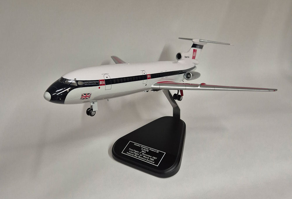 Trident 2E G-AVFB at Imperial War Museum, Duxford, England on display in British European Airways livery.