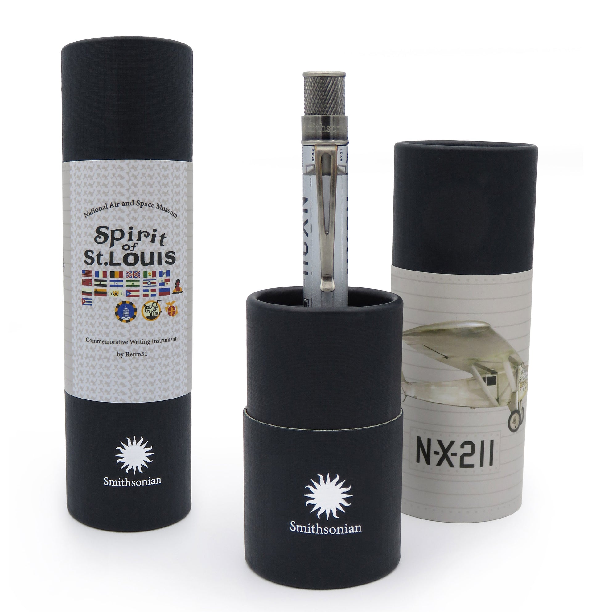 Retro51 is proud to present the Spirit of St. Louis to the officially licensed Smithsonian Collection of Fine Writing Instruments. The plane’s graphics and details have been recreated on this twist-top Tornado™ rollerball. All the details of this plane have been included through acid-etching and printing on the barrel that's complete with antiqued trim and the Smithsonian name and logo on top. Pick up this token of historical achievement and challenge yourself to unimaginable accomplishments.